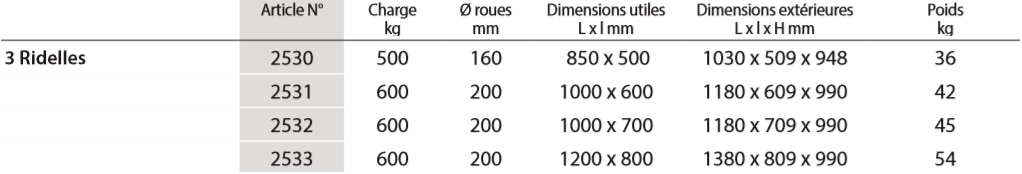 Chariot à 3 ridelles FETRA