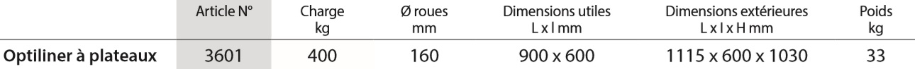 .3601 Optiliner à 2 plateaux non rabattables. Hauteur: 230/735 mm, Charge plateau du haut 200 kg