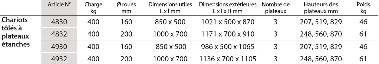 - Construction en acier avec 3 plateaux étanches.
