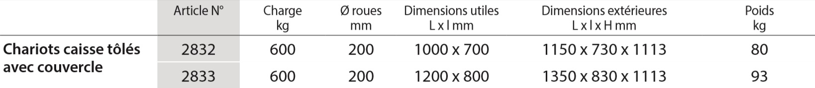 Chariots caisse tôlés avec couvercle 2832 | 2833 Construction comme 2822 | 2823. Avec couvercle à battant comme 2862 | 2863.