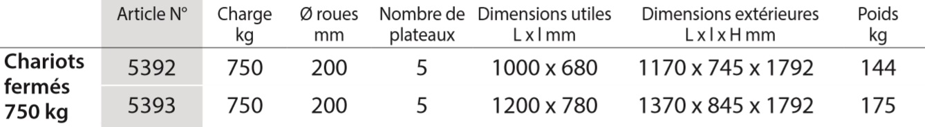 Chariot fermé FETRA avec serrure 2 points