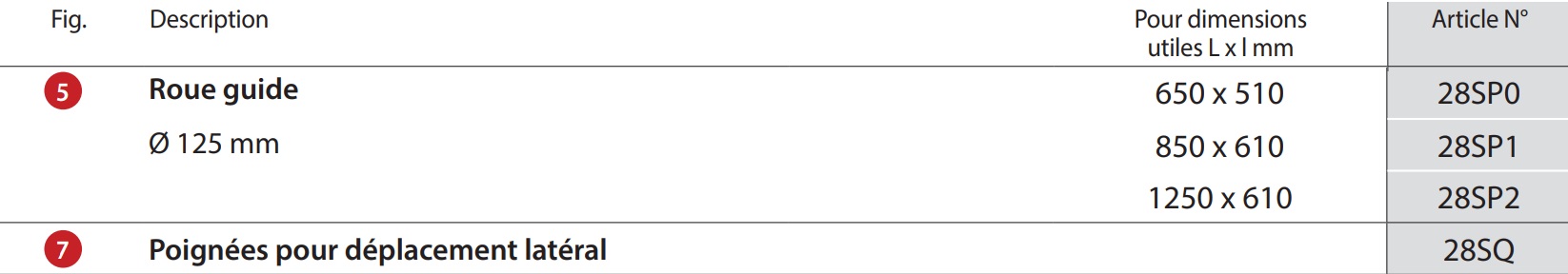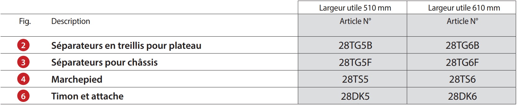 - Valable pour chariots hauteur 1225 mm référence 28100,28101,28102