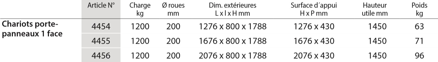 4454 | 4455 | 4456 Chariot 1 face avec protection en caoutchouc.
