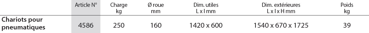 Chariot pour pneumatique FETRA charges 250 Kg