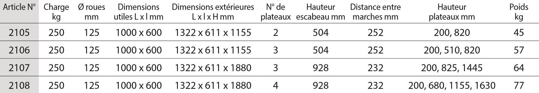 2107 | 2108 Avec marchepied déplié le chariot s´allonge de 430 mm.