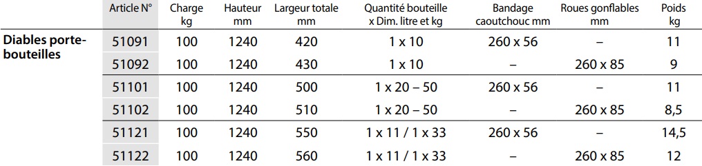 - Diable porte-bouteilles avec chaîne de maintien.