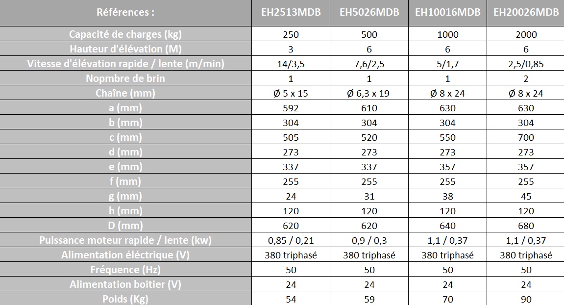 Palan électrique à chaîne 380v triphasé, série EH