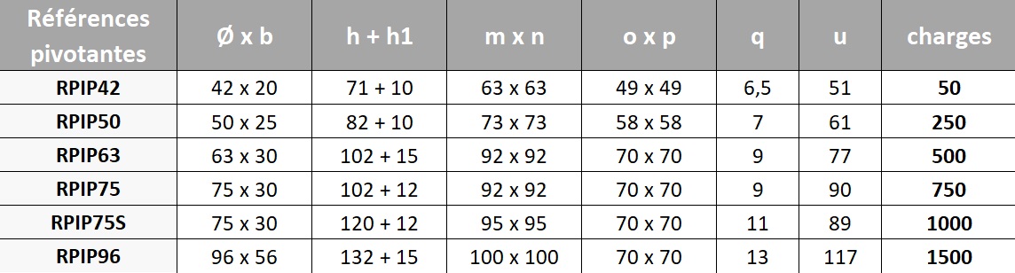 - Chapes/supports : fonte d’aluminium moulé, finition peinture ivoire martelé, pivotement sur 2 couronnes de billes.