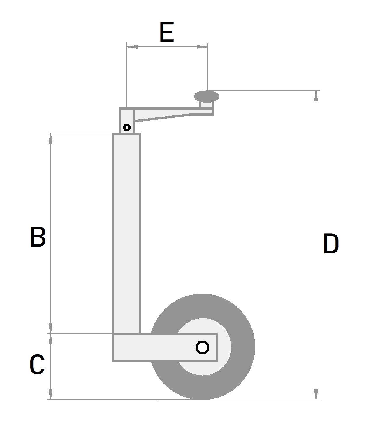 Roue jockey permettant la mise à niveau d’attelages. Equipé d’une manivelle permettant la levée et la descente. Roue à bandage caoutchouc noir sur jante en tôle. Bride de fixation en option.