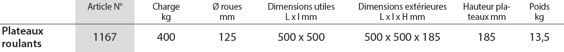- Plateau roulant en profilé d'acier avec plateau en tôle antidérapant.