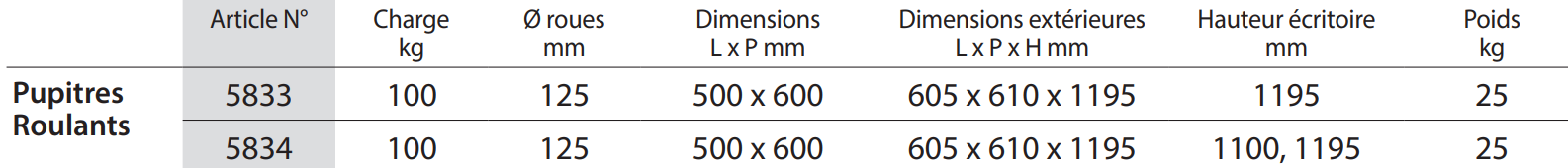 Pupitre roulant FETRA