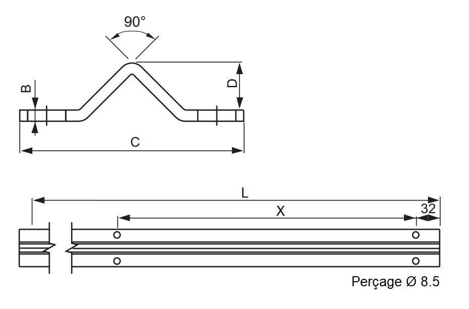 - Rail en acier zingué à visser.