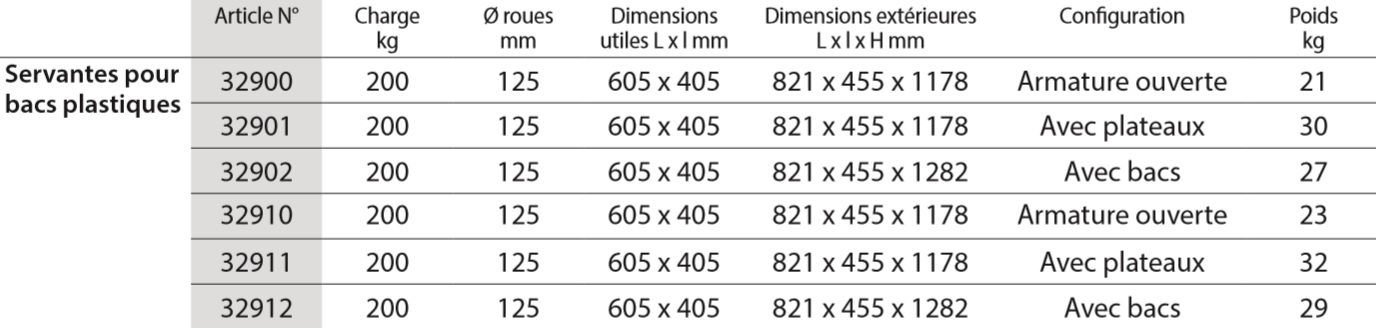 - Servantes pour bacs plastiques Système modulable Ensemble mécano-soudé et vissé,