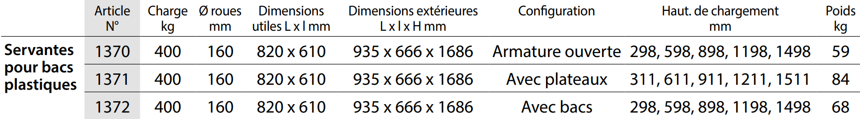 1372 avec 10 bacs plastiques 1335, 600 x 400 x 145 mm.